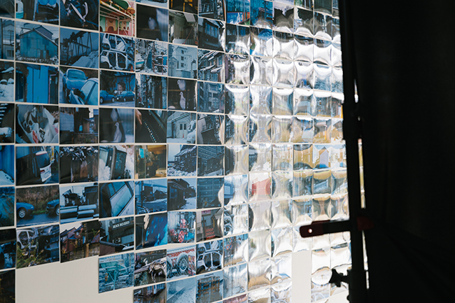 古いタイヤの横に鳩