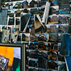 古いタイヤの横に鳩